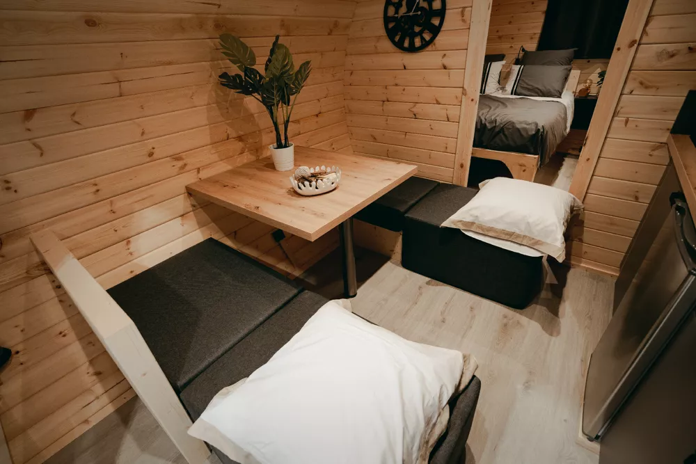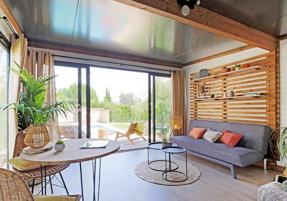La Créavie incarne la flexibilité. Cette Tiny House sur mesure peut se transformer selon vos envies : un bureau de jardin pour le télétravail, une salle de sport privée, un bar convivial pour recevoir vos amis, ou même un hébergement indépendant pour la location type Airbnb. Sa conception intelligente optimise chaque mètre carré pour un confort maximal dans un espace compact.